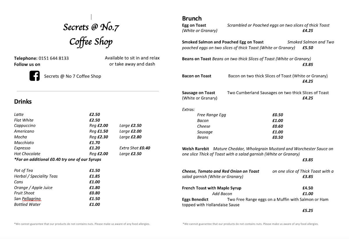 In short, Secrets@No7 Coffee Shop is not just another cafe; it's a cherished part of the local community, offering delicious bites, stellar service, and a warm atmosphere that you will want to revisit time and again. Whether you're a Bebington local or just passing through, make sure to drop by this delightful spot where every visit feels like a homecoming.